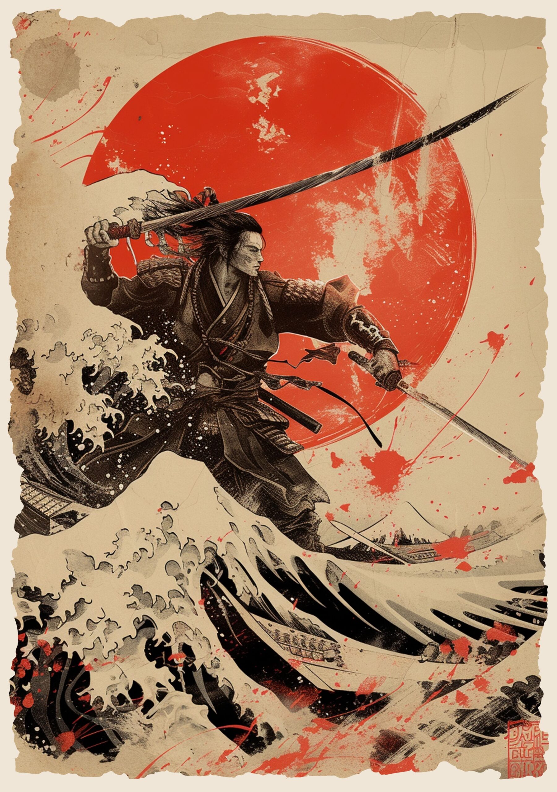Wydrukowany na wysokiej jakości papierze błyszczącym o gramaturze 200g/m2, ten plakat oferuje trwałość i intensywność, które przyciągną wzrok każdego. Dostępny w rozmiarach od A4 do A1, doskonale wpisuje się w każde wnętrze, dodając mu niepowtarzalnego charakteru i samurajskiego ducha.