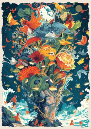 Plakat Kosmiczny Przepływ jest częścią kolekcji Tajemnice Wyobraźni, która bada granice między technologią, naturą i ludzką świadomością w futurystycznym kontekście. Każdy plakat z tej serii to eksploracja nieznanego, gdzie każdy szczegół ukrywa w sobie opowieść o nieodkrytych jeszcze światach.