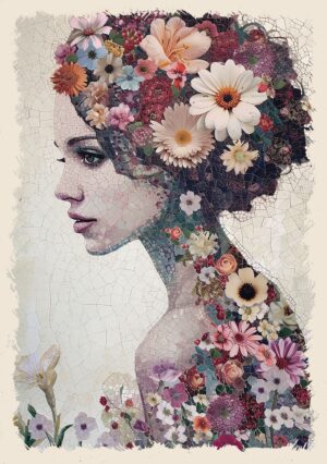 Plakat Kwiatowy Sen jest częścią kolekcji Szept Kwiatów, która celebruje delikatne piękno natury i głębię kobiecej duszy. Każdy plakat z tej serii to podróż w głąb marzeń i wyobraźni, pełna subtelnych odcieni i cichych, kwiatowych szeptów.