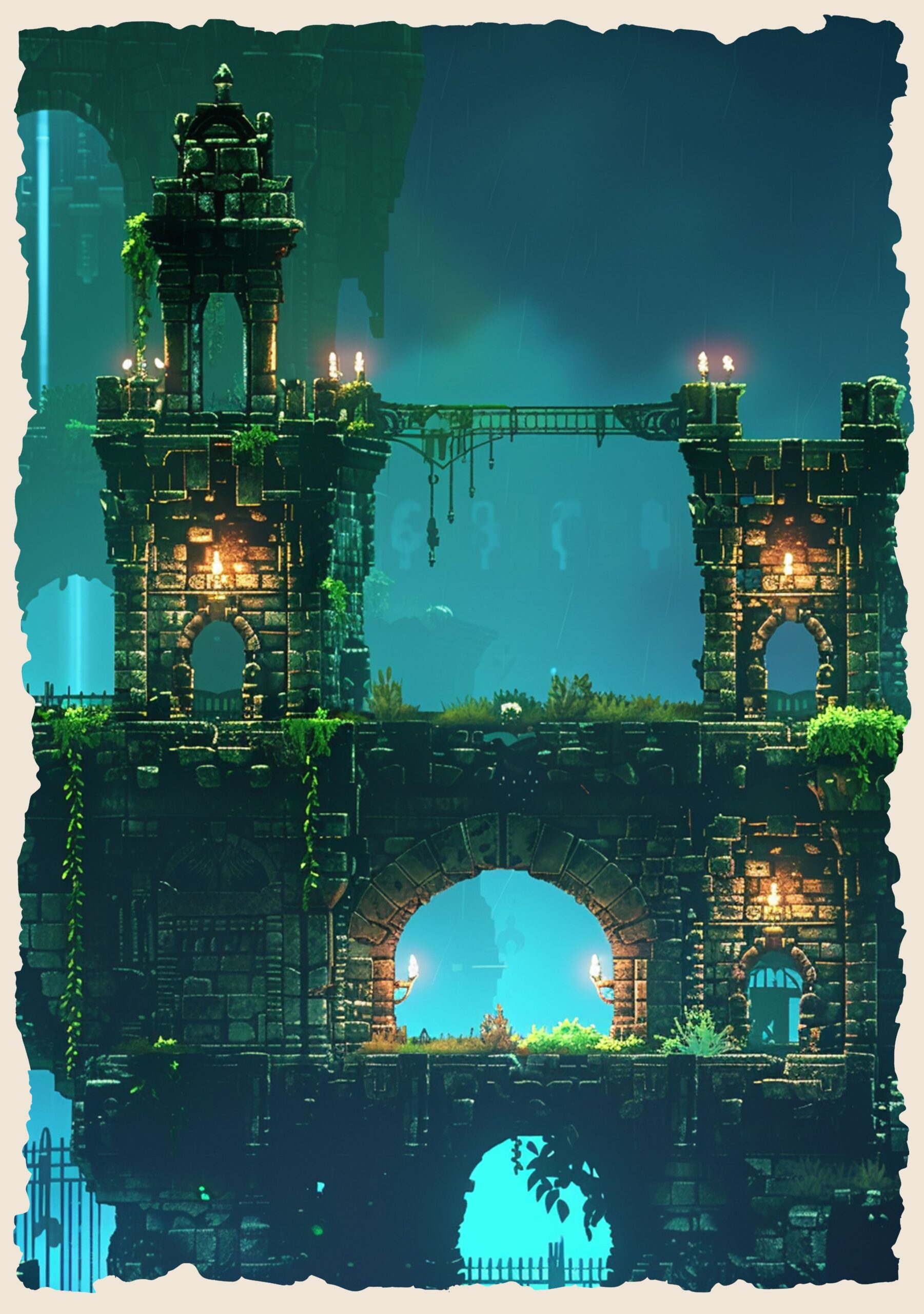 W głębi nieznanych krain, ukryta przed czasem i zapomniana przez ludzi, leży Zaginiona Cytadela. Jej stare mury i kamienne wieże wciąż lśnią blaskiem pochodni, a zieleń oplata każdy zakamarek, jakby sama natura próbowała odzyskać to miejsce. Nocny deszcz zrasza opustoszałe korytarze, a tajemnicze światło księżyca rozjaśnia kładki, które niegdyś prowadziły rycerzy do walki. To świat, w którym przeszłość spotyka się z teraźniejszością, tworząc atmosferę pełną tajemnicy i nostalgii.